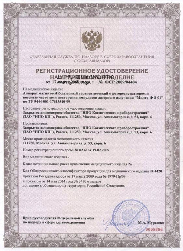 该医疗器械注册证由联邦行政当局发布。你需要准备一套由卫生部确定的文件。在注册过程中,专家检查申请人提交的所有文件,然后将制剂或产品的样品送到实验室进行测试。如果所有阶段的结果都是积极的,申请人将获得俄罗斯卫生部颁发的注册证书--该文件的合法性可以随时在登记簿上查询。